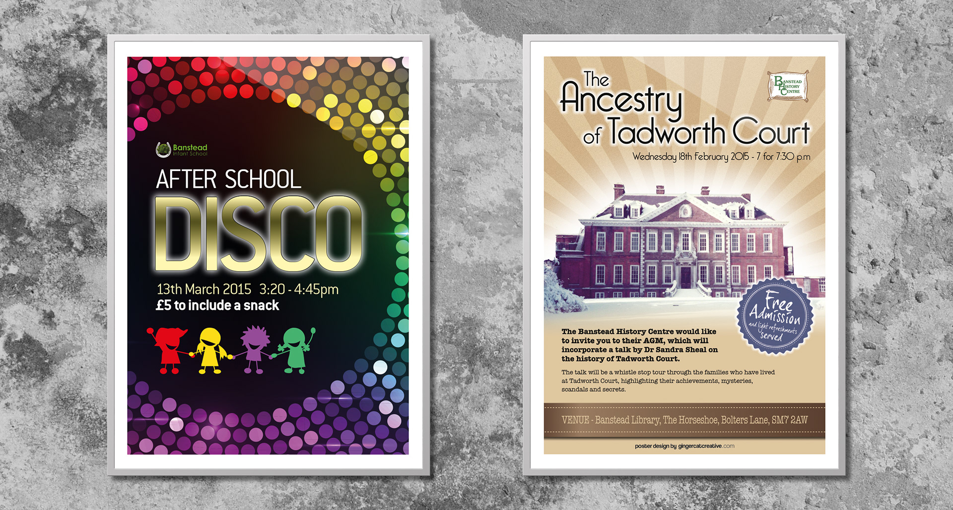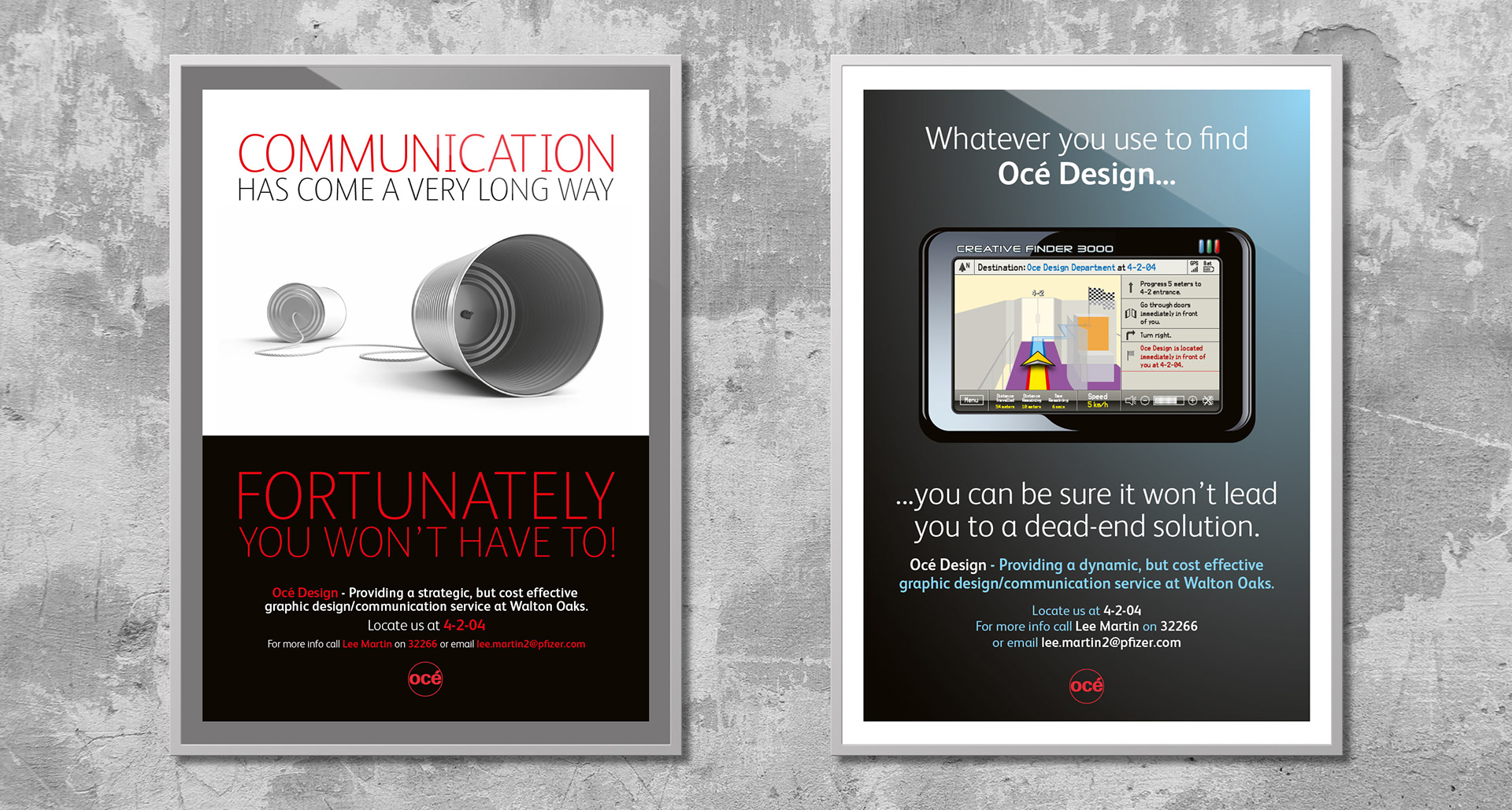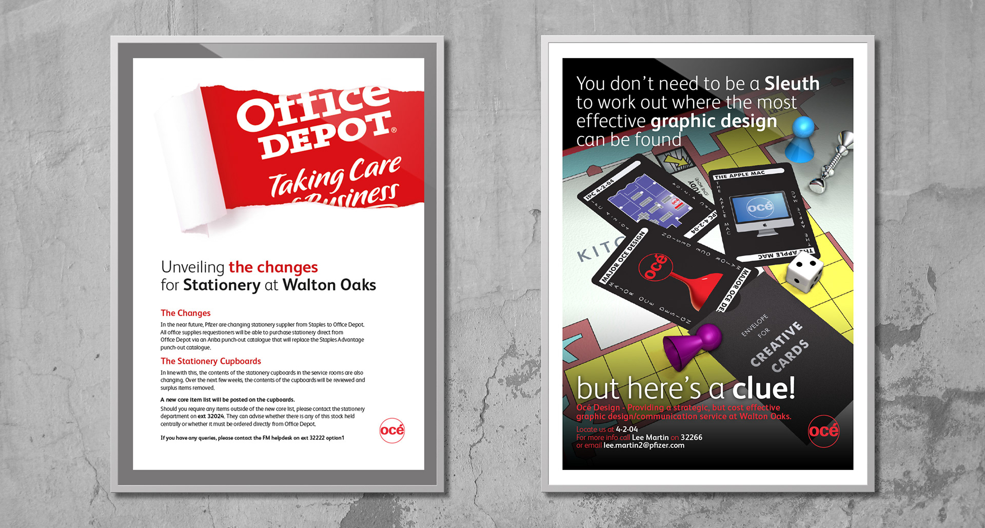 Various promotional posters ranging from local area events to Pfizer Ltd service promotions.