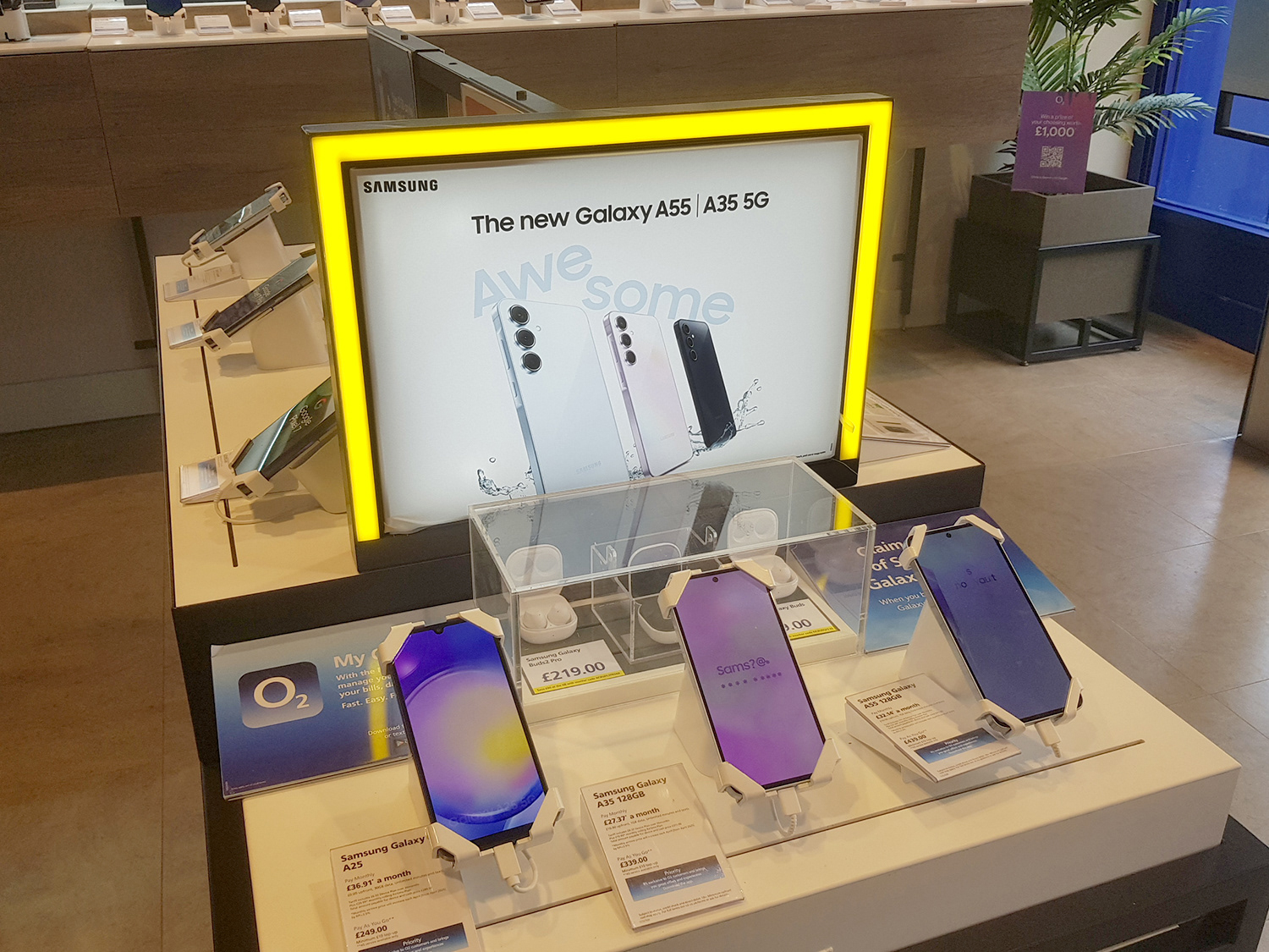 New creative used as backdrop in O2 shops (this shop is in Sutton, Surrey)